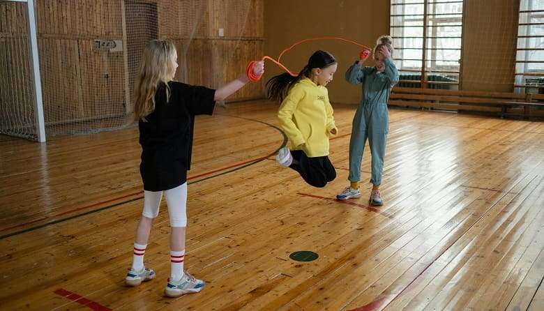 - Kids jumping over a rope turned by others while singing rhymes was something memorable.